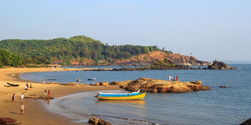 Traditional fishing boats and coastal village life can be seen along the beach, providing cultural insight into Uttara Kannada’s local lifestyle.